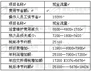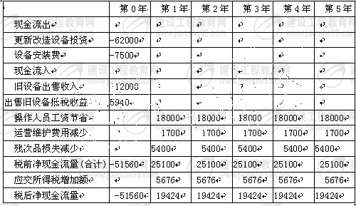 本例中,更新改造的投資可以使操作人員年工資減少18000萬元,年運營維護費從8500萬元降至6800萬元,年殘次品損失可以從7200萬元降至1800萬元。
