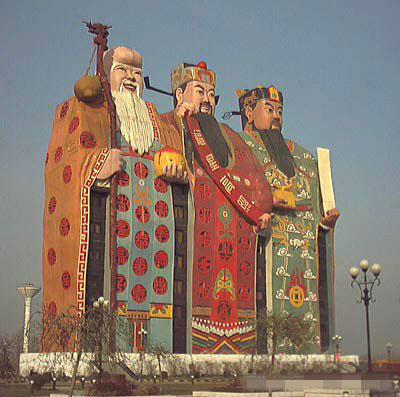 借御駕行宮,造福祿壽三星清晨看見福祿壽三星,恐怖的感覺一掃而光,望著沐浴在陽光下的披著彩色面磚的巨大建筑,只覺得好笑和不理解——開發(fā)商竟有如此魄力,建筑師竟配合得天衣無縫,審批部門竟欣然接受。