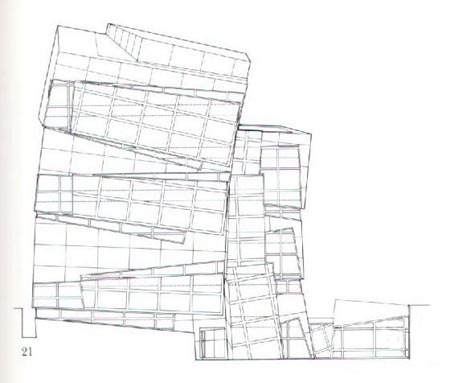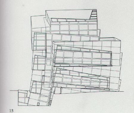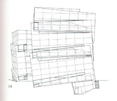 Design/Completion 1990/1992 Tokyo,Japan Nunotani Company Ltd 40.000 square feet The land mass of Japan is constantly subjected to earthquake activity,and the Nunotani building is seen as a metaphoric record of these continuous waves of movement. Simultaneous to this analog), the project represents an attempt to rethink the symbolism of the vertical office building, First by producing a building that is not metaphorically skeletal or striated, but rather made up of a shell of vertically compressed and translated plates; and second,by producing an image somewhere between an erect and a “l(fā)imp” condition. The building consists of studio and office spaces,a multimedia presentation room, library, cafeteria, CAD workrooms and traditional Japanese resting rooms.