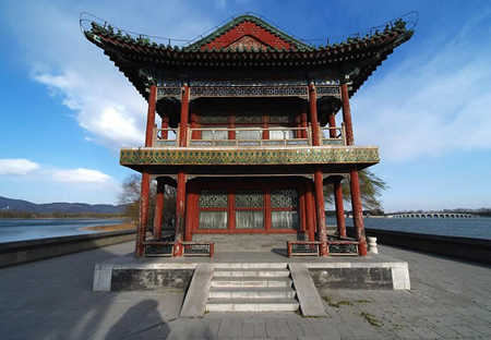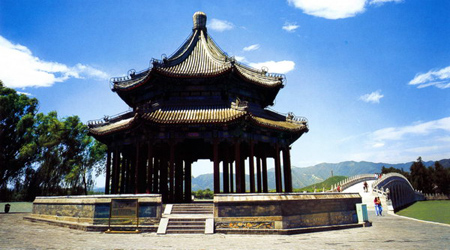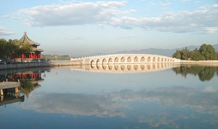 頤和園位于北京市西北部海淀區(qū),距市中心約15公里,原為清代的行宮花園,其名為“頤養(yǎng)太和”之義。園中的長廊、石舫、佛香閣、寶云閣、大戲樓、十七孔橋、玉帶橋等建筑堪稱世界建筑文化中的珍品。在中外園林藝術(shù)史上有極高的地位。 全園分萬壽前山、昆明湖、后山后湖三部分。前山以佛香閣為中心,組成巨大的主體建筑群,華麗雄偉,氣勢磅礴。碧波蕩漾的昆明湖平鋪在萬壽山南麓,約占全園面積的3/4.湖中有一座南湖島,由美麗的十七孔橋和岸上相連。湖西部有一西堤,堤上修有六座造形優(yōu)美的橋。后山后湖碧水瀠回,古松參天,環(huán)境清幽。
