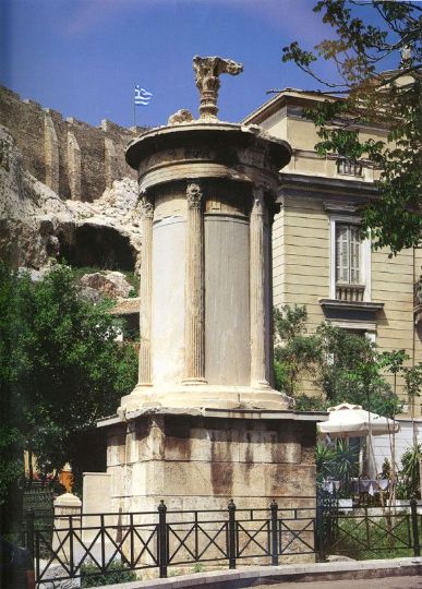 雅典列雪格拉得音樂紀念亭這種建筑是古希臘供陳列體育或歌唱比賽所獲獎品的獨立的紀念性建筑物。因此也稱為“雅典得獎紀念碑”。從公元前4世紀起,這類紀念性建筑的興起,這是僅留存的一座。 這座亭是公元前335—334年間,雅典富商列雪格拉得,為了紀念由他扶植起來的合唱隊在酒神節(jié)比賽中獲得勝利而建的。