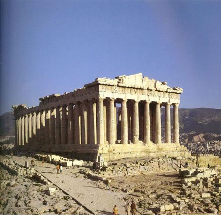 巴特農(nóng)神廟是雅典衛(wèi)城最重要的主體建筑!鞍吞剞r(nóng)”原意為“處女宮”,因它祀奉的雅典娜女神是處女,故又稱“雅典娜處女廟”。它建于公元前447—432年。設(shè)計人為伊克諦諾 斯和卡里克拉特。整個建筑工程是在大雕刻家菲狄亞斯的指導(dǎo)和監(jiān)督下完成的,神廟的雕刻 都為菲狄亞斯和他的弟子所創(chuàng)作。