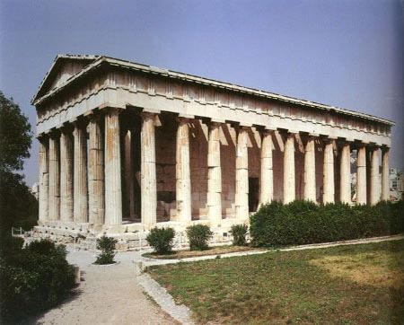希臘最早的神廟建筑只是貴族居住的長方形有門廊的建筑。在他們看來神廟是神居住的地方,而神不過是更完美的人,所以神廟也不過是更高級的人的住宅。后來加入柱式,由早期的 “端柱門廊式”逐步發(fā)展到“前廊式”,即神廟前面門廊是由四根圓柱組成,以后又發(fā)展到“前后廊式”,到公元前6世紀前后廊式又演變?yōu)橄ED神廟建筑的標準形式——“圍柱式”,即長方形神廟四周均用柱廊環(huán)繞起來。