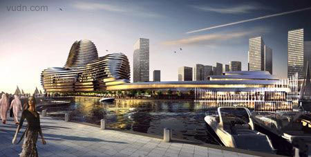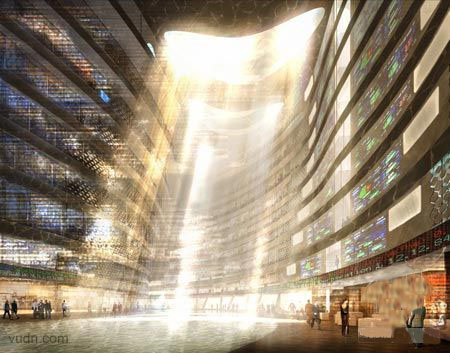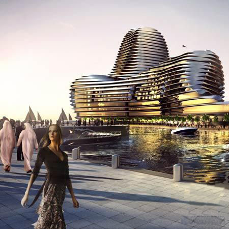 阿布達(dá)比世界貿(mào)易中心,位于阿布扎比東Al Raha Beach.沿海氣候和地形的選址及建設(shè)經(jīng)歷一個(gè)復(fù)雜環(huán)境計(jì)算機(jī)分析的過程。它提供了遮蔭,空氣自然流動的,緩沖對抗強(qiáng)的沙漠風(fēng),它是不對稱雕塑,具有環(huán)保和功能上的連貫性。建設(shè)延伸到中心的濱海創(chuàng)造一個(gè)半島完成了生動的濱水長廊。該項(xiàng)目匯集了精心挑選組合:辦公室,公寓,酒店和商店,以鼓勵(lì)不同格局的經(jīng)濟(jì)和社會活動。