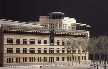 The new U.S. Embassy in Berlin occupies a focal position at the symbolic and political center of the reunified Germany. In this exceptional place and time, Moore Ruble Yudell‘s 1996 competition-winning design seeks to reflect both American values and a respect for the people and culture of Germany,As a background as well as a partner for the Brandenburg Gate, the new embassy maintains a respectful yet spirited dialogue with its surroundings, architecturally playing out the relationship between the two governments. By day and night, the copper and glass lantern of the rooftop State Room Pavilion serves as a beacon on the city skyline, signaling the American presence and the democratic values shared by the two countries.
