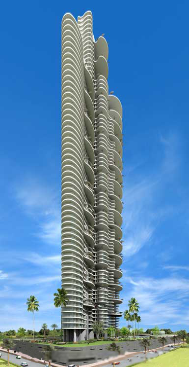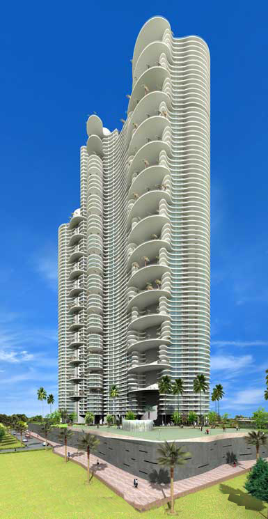 世界建筑新聞網(wǎng)12月17日報(bào)道,這座建筑的外形很像是海浪的頂峰。起伏的直線排列的陽臺橫越整座公寓樓,每一間公寓都可以毫無遮擋地看到海景。四個樓塊組成的大廈其公寓面積從2000平方英尺到6000平方英尺不等,從40層到80層連接在一起。較高樓層的陽臺波浪狀延伸,其延伸部分構(gòu)成了俯瞰大海的空中花園。這座建筑的設(shè)計(jì)者是Sanjay Puri事務(wù)所,建筑面積為30萬平方英尺。