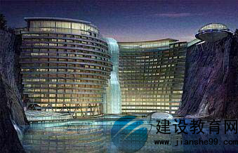 去年的一次國際設(shè)計大賽中,這個酒店的設(shè)計贏得了冠軍。這家超級豪華的酒店位于水平線以下,擁有各種水下的公共場所,會客室,咖啡館,餐廳等等。它帶有的運動功能也令人贊嘆:帶有一個超級大型人工游泳池,攀巖,蹦極等等。