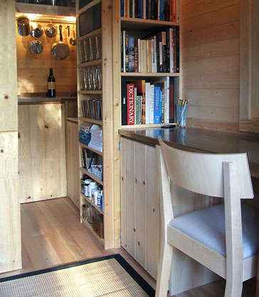 這個小房子叫夢之家,坐落在 Sebastopol郊外。夢之家是藝術(shù)家 Jay Shafer的手工作品。除了廚房是不銹鋼的外,室內(nèi)都是木結(jié)構(gòu),用定制的家具來裝修。
