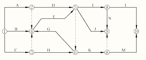7、某分部工程雙代號網(wǎng)絡(luò)計劃如下圖所示,其作圖錯誤包括( )。