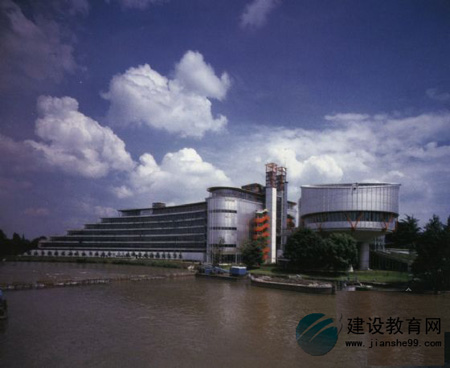 歐洲人權法院是落杰斯設計生涯中的一個重要建筑,也是歐洲新形象的代表作之一。歐洲人權法院的形象一定程度上代表了歐盟在人權上的態(tài)度。從這個角度來看,建筑就應該做得更有人文氣息,給人以安全感,還要注意建筑的質量以及與環(huán)境的和諧。歐洲人權法院位于法國的斯特拉斯堡,西歐的中心地帶。該法院遠離市中心,但靠近大河,緊臨歐洲議會建筑群,希望可以做出一個有標志性的建筑。