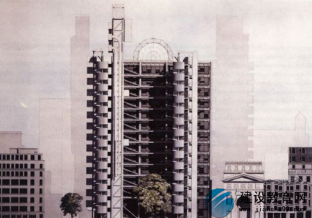 洛伊德保險公司總部坐落在不規(guī)則的基地上,以一規(guī)則形的大房間為主體,充分利用土地,并與原由環(huán)境形成協(xié)調關系。在此巨大量體中,面對低矮的房子時,扔采用逐層退縮的方式,由12層退縮至6層,并注意建筑物對街道形成的行人尺度影響。希望能與都市脈絡相溫和,對天際線盡量減少沖擊。