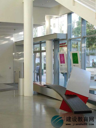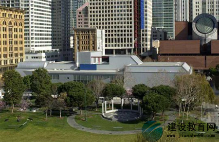 具有“L”型平面的建筑,位于耶爾瓦布埃納(Yerba Buena)公園的主干道旁,面對(duì)一條重要的步行。建筑的內(nèi)部活動(dòng)似乎難以與外部的公共環(huán)境相適。雕塑廣場(chǎng)的運(yùn)用,既是對(duì)內(nèi)部系列展室的延伸,同時(shí)又是城市空間的戶外展室;此外,主要功能因子――畫廊、展室、報(bào)告廳、視聽室――大多被安置在建筑前部公共區(qū),與一兩層高的門廳相連。視線上,該門廳與耶爾瓦布埃納公園相連通;功能上,它是布展空間和公共活動(dòng)空間的補(bǔ)充。