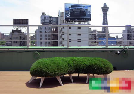 日本某公司設計了這種長椅,放在公園綠地會非常有效果,椅面是新鮮的草坪,坐下去:純天然的感覺。