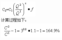 例題:[2006年]按照生產(chǎn)能力指數(shù)法(x=0.8,  f=1.1),如將設(shè)計中的化工生產(chǎn)系統(tǒng)的生產(chǎn)能力提高到三倍,投資額將增加(   )