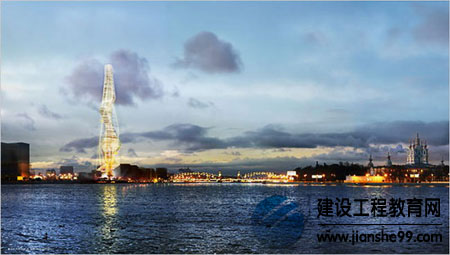 俄羅斯天然氣之都(Gazprom City)將屹立在俄羅斯圣彼得堡(ST. PETERSBURG)涅瓦河畔的一個(gè)歷史上著名的位置,與巴洛克風(fēng)格的藍(lán)白相間的斯莫爾尼大教堂遙遙相望。這個(gè)計(jì)劃中的時(shí)髦的現(xiàn)代建筑復(fù)合體的讓人聯(lián)想起天然氣燃燒時(shí)的火焰、脫氧核糖核酸(DNA)分子鏈和貴婦人的高跟鞋。