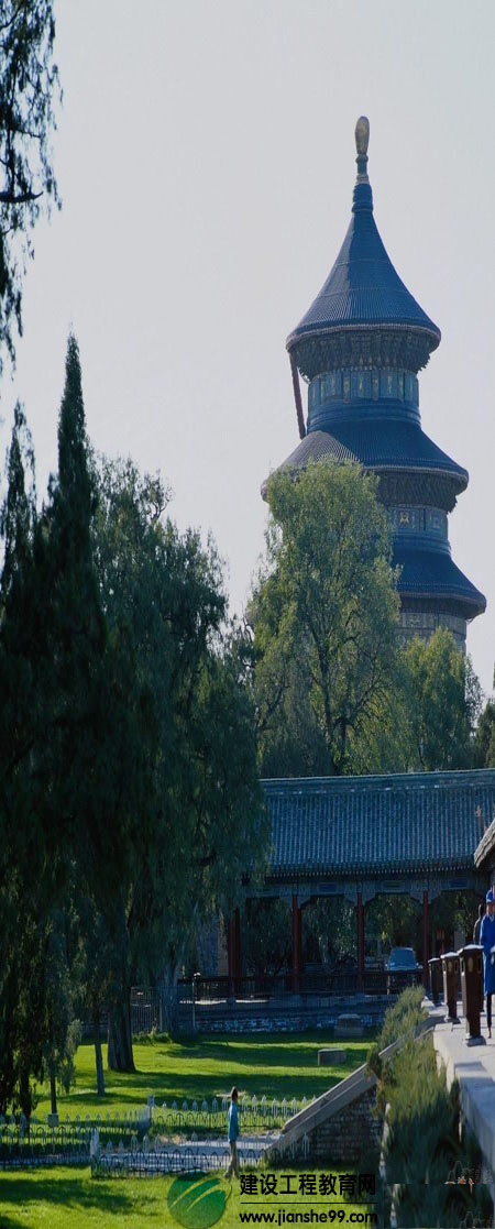 我國古建筑的外部造型,也盡量表現(xiàn)出與自然協(xié)調的意念。他不象西方建筑那樣是實體一塊的龐然大物,而是有虛有實,輪廓柔和,曲線豐富,在穩(wěn)重中呈現(xiàn)出一定的變化。臺基除了對木結構的防水,防腐功能之外,可以增加古建筑的穩(wěn)定感。柱梁斗拱等組成的木構架,輕盈同透,給人以靈動的觀感。碩大的屋頂鋪以漂亮的反曲線和輕巧多姿的翼角,給予建筑一種柔性的適應感,使之與山水林木等自然環(huán)境取得了相當?shù)暮椭C。