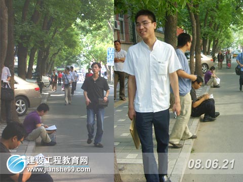 今年的北京,下過幾場大雨,所以夏天比往年要來得晚一些。但是經(jīng)歷了昨天的悶熱天氣之后,今年我們迎來了一個艷陽高照的日子。今天是夏至,最高氣溫32度,但是早上的北京還沒有那么的炎熱,考生們也都個個精神抖擻,信心百倍,通過我們的采訪也看得出考生的心情非常好。早上9點開始考試,考生們7點多就已經(jīng)在門口等待。今年的考試管理非常嚴(yán)格,考生需提前一個小時持準(zhǔn)考證入場。為了趕早和考生交流,建設(shè)工程教育網(wǎng)記者早早來到位于德勝門外的北京市電子信息學(xué)校的考點,看到考生們在交流和進行最后的沖刺準(zhǔn)備,看得出來大家對這次的考試信心很足。8點40,考生們陸續(xù)走進考場,一路走來,談笑風(fēng)聲,好象大家都忘記了今天要考試,也許是大家都復(fù)習(xí)得很到位的原因。通過網(wǎng)校記者和學(xué)員們的交流,發(fā)現(xiàn)大家對二級建造師的考試的熱情非常高,而且對考試也很有把握,今年二級建造師的教材和大綱基本沒有變動,學(xué)員們的備考也很充分,對這次考試信心十足,在記者的祝福下,考生們也面帶笑容地步入考場。與此同時,大部分考生還非常感謝建設(shè)工程教育網(wǎng)的輔導(dǎo),覺得輔導(dǎo)對自己幫助很大,增加了通過的信心,身為網(wǎng)校一員的記者,自己也為他們感到高興,看著他們遠去的背影,默默地為他們送去祝福,愿他們“旗開得勝,馬到成功!”