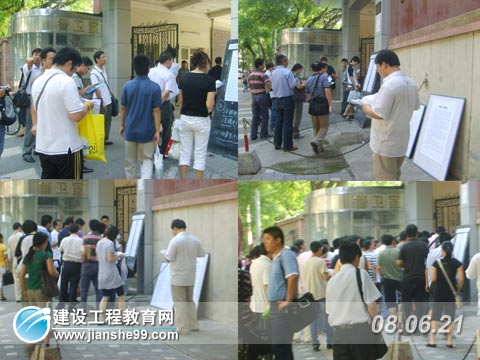 建設(shè)工程教育網(wǎng)6月21日訊 今天(2008年6月21日),2008年全國二級建造師考試如期舉行(除四川延考外),這是本年度建筑類上半年考試中的最后一類,而且二級建造師的從業(yè)人群是非常多,地震的發(fā)生,對工程質(zhì)量的把關(guān)更加嚴(yán)格,所以獲得執(zhí)業(yè)資格尤為重要。考試在9點準(zhǔn)時舉行,各個考點外已經(jīng)站滿了考生,有的在考點外和同考的人互相交流著,有的考生則在考點外進行最后的沖刺準(zhǔn)備,建設(shè)工程教育網(wǎng)記者也奔赴各考點,進行追蹤報道。
