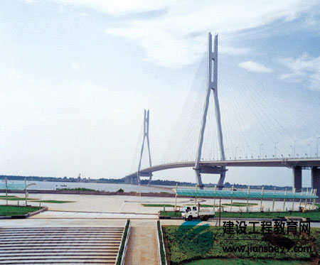 南京長江二橋位于現(xiàn)南京長江大橋下游11公里處,全長21.337公里,由南、北汊大橋和南岸、八卦洲及北岸引線組成。其中:南汊大橋為鋼箱梁斜拉橋,橋長2938米,主跨為628米,南京長江二橋僅次于日本多多羅大橋和法國的諾曼底大橋位居同類型橋中世界第三,中國第一;北汊大橋為鋼筋混凝土預(yù)應(yīng)力連續(xù)箱梁橋,橋長2172米,主跨為3×165米,該跨徑在國內(nèi)亦居領(lǐng)先。全線還設(shè)有4座互通立交、4座特大橋、6座大橋。設(shè)計標(biāo)準(zhǔn):雙向六車道高速公路;設(shè)計速度:100公里/小時;設(shè)計荷載:汽──超20,掛──120;路基寬33.5米,橋面寬32米(不含斜拉索錨固區(qū))。全線設(shè)有監(jiān)控、通訊、收費(fèi)、照明、動靜態(tài)稱重等系統(tǒng),并設(shè)有南汊主橋景觀照明,南、北汊橋公園和八卦洲服務(wù)區(qū)。