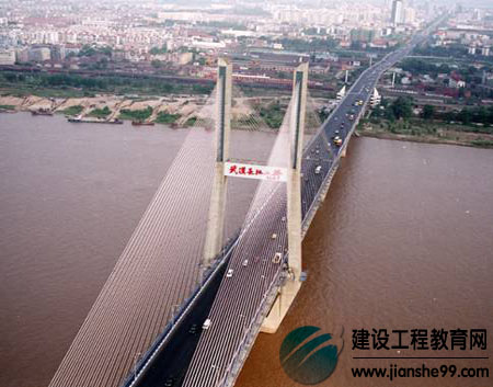 武漢長(zhǎng)江二橋位于武漢長(zhǎng)江下游6.8公里處,與舉世聞黃鶴樓和雄偉的龜山電視塔遙相挺立。它氣勢(shì)雄偉、線條流暢、比例協(xié)調(diào)、主塔高聳挺拔, 并以它高超的技術(shù)和優(yōu)美的造型成為武漢市的新景觀和標(biāo)志性建筑。