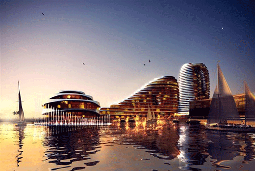 阿布扎比世界貿易中心是阿拉哈海灘區(qū)最主要的建筑,也是這個阿布扎比東部新興的沿海城市的地標建筑,設計方案是特別針對該獨特的沿海城市的氣候和地理狀況而成的,經(jīng)過漫長的電腦環(huán)境學分析最終成形。該建筑解決了當?shù)孛艿牡乩硖攸c:既有陰涼的一面,有能夠接受陽光的照射;采用自然空氣的流通來制冷同時又組織了沙漠強風的蹂躪;既像一件不規(guī)則的雕塑品又具有環(huán)境與功能的和諧性。
