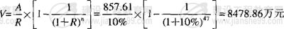 ?、邔懽謽钦郜F(xiàn)到第1年末折現(xiàn)值=8478.86/(1+10%)3=6370.29萬(wàn)元