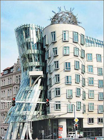 捷克首都布拉格最受爭(zhēng)議的后現(xiàn)代結(jié)構(gòu)主義建筑之一,坐落于沃爾塔瓦河畔。1992年由美國(guó)建筑師法蘭克·格里和捷克建筑師米盧尼奇合作設(shè)計(jì),于1995年完成。 房子造型充滿(mǎn)曲線(xiàn)韻律,蜿延扭轉(zhuǎn)的雙塔就像是兩個(gè)人相擁而舞,因此被稱(chēng)為“跳舞的房子”———左邊是玻璃帷幔外觀的“女舞者”,上窄下寬像舞裙的樣子,右邊圓柱狀的則是“男舞者”,所以又有人以著名的雙人舞者金姬·羅杰斯及弗雷德·阿斯泰爾將大樓命名為“金姬和弗雷德”,兩棟建筑物像極了他們舞影婆娑的樣子。 這棟新潮的辦公建筑,剛好位于二戰(zhàn)期間遭美軍誤以為是德國(guó)的德雷斯頓而慘遭炸毀的原址上,業(yè)主是荷蘭的保險(xiǎn)公司,房子頂樓是布拉格有名的法式餐廳——布拉格的珍珠。從餐廳頂樓可以遠(yuǎn)眺皇宮和大教堂,夜幕低垂時(shí),皇宮的燈光和河上流動(dòng)的燈影曖昧相約,道不盡戀戀風(fēng)情。 然而,這棟建筑從規(guī)劃到完成卻是貶多于褒,尤其是設(shè)計(jì)者法蘭克·格里曾被稱(chēng)為“外星人美國(guó)建筑師”,常因?yàn)槟暜?dāng)?shù)仫L(fēng)土環(huán)境,只一味移植美國(guó)經(jīng)驗(yàn)而遭人詬病。捷克人就戲稱(chēng)街角那個(gè)玻璃曲線(xiàn)塔為“被扭曲的可口可樂(lè)瓶”,大部分人甚至認(rèn)為這棟房子是美國(guó)繼二戰(zhàn)后在歐洲投下的第二顆炸彈,是一個(gè)破壞城市紋理的象征。