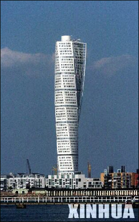 該大廈由西班牙建筑師卡拉特拉瓦設(shè)計(jì),高189米,共有9個(gè)區(qū)層,每區(qū)層有5層,有152個(gè)單元,每區(qū)層都旋轉(zhuǎn)少許,使整棟大廈共旋轉(zhuǎn)90度。該大廈最底下兩 個(gè)區(qū)層是辦公室,其余7個(gè)區(qū)層共有150個(gè)豪華住宅單元,總面積1.5萬(wàn)平方米?ɡ乩弑硎,設(shè)計(jì)這座大廈的靈感來(lái)自一件身體扭動(dòng)的人體雕塑。他說(shuō):“我希望建造與別人不同、技術(shù)上獨(dú)一無(wú)二的東西!爆F(xiàn)在這座極具特色的建筑已成為瑞典南部城市馬爾默的標(biāo)志。