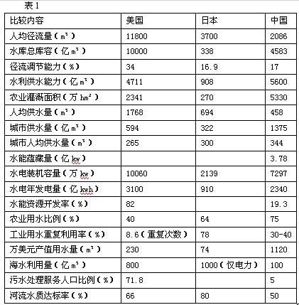 為了解我國(guó)水利建設(shè)發(fā)展的水平,我們選擇一些重要指標(biāo)與發(fā)達(dá)國(guó)家進(jìn)行比較(表1),我們可以得到以下一些認(rèn)識(shí):
