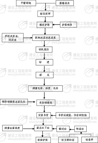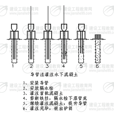 導(dǎo)管法灌注水下砼施工程序見(jiàn)下圖: