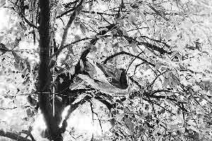 家住總府路的李祥每天下班都要經(jīng)過大慈寺路光大銀行門口,昨日,正當(dāng)他走到光大銀行時,被天上的飛鳥吸引住了,抬頭一看,發(fā)現(xiàn)光大銀行門前10米高的大樹上有個“鳥巢”。