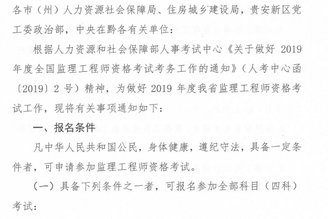 貴州2019年全國監(jiān)理工程師資格考試考務(wù)工作的通知