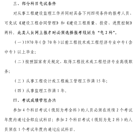2018年上海監(jiān)理工程師部分科目免試條件