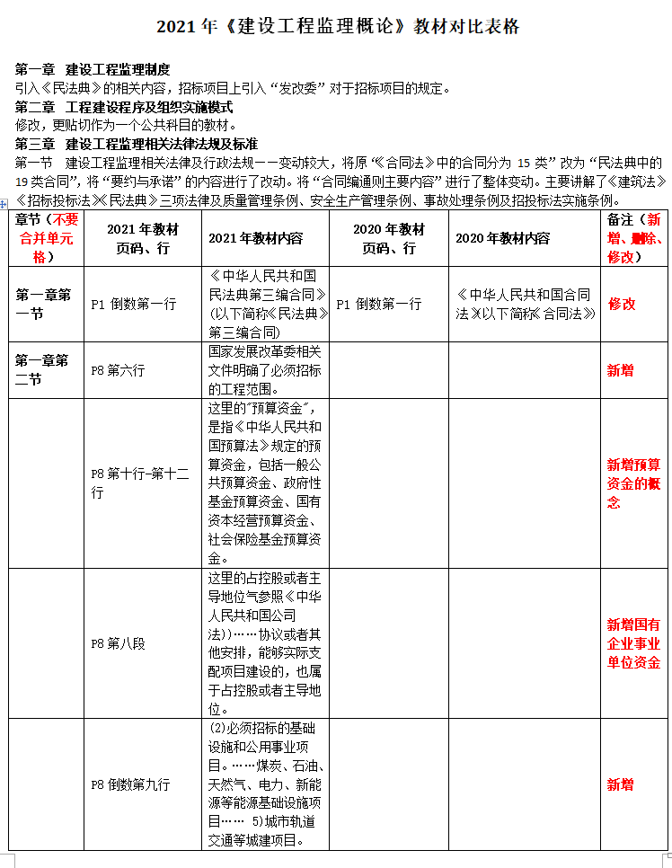 2021年監(jiān)理工程師《建設(shè)工程監(jiān)理概論》教材對(duì)比已經(jīng)為考生準(zhǔn)備好,具體如下: