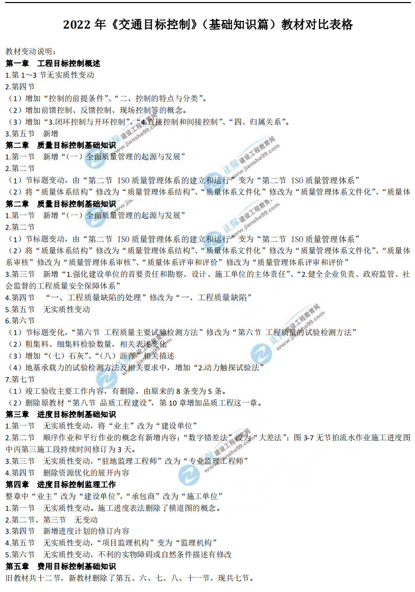 2022年監(jiān)理工程師目標(biāo)控制交通(基礎(chǔ)知識篇)教材對比