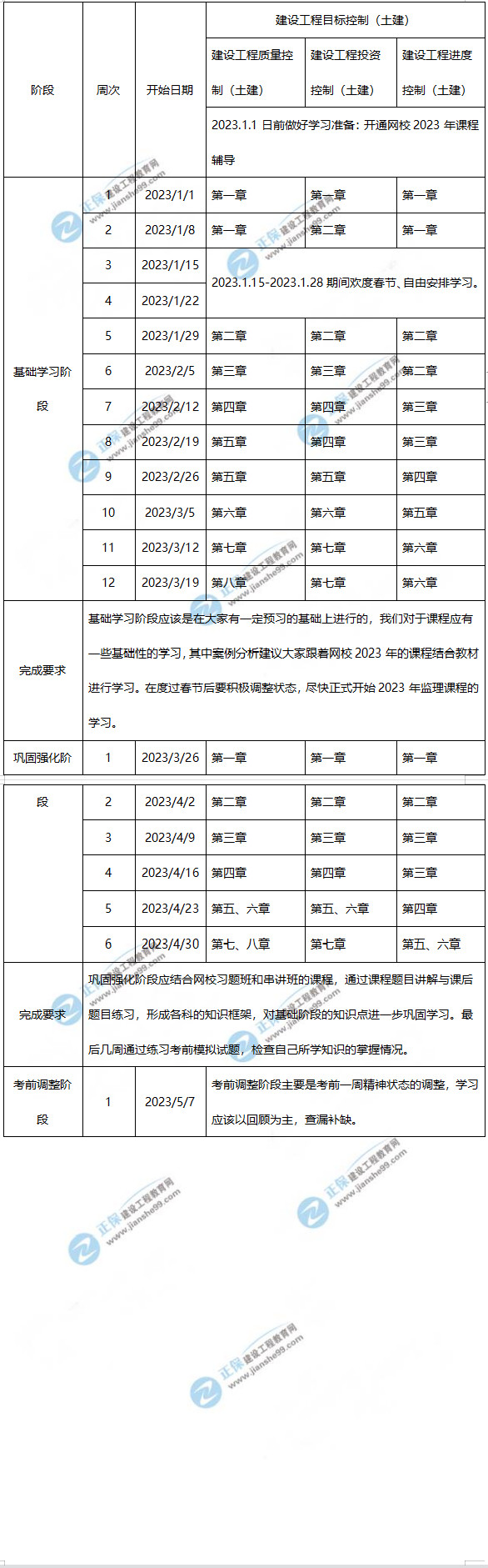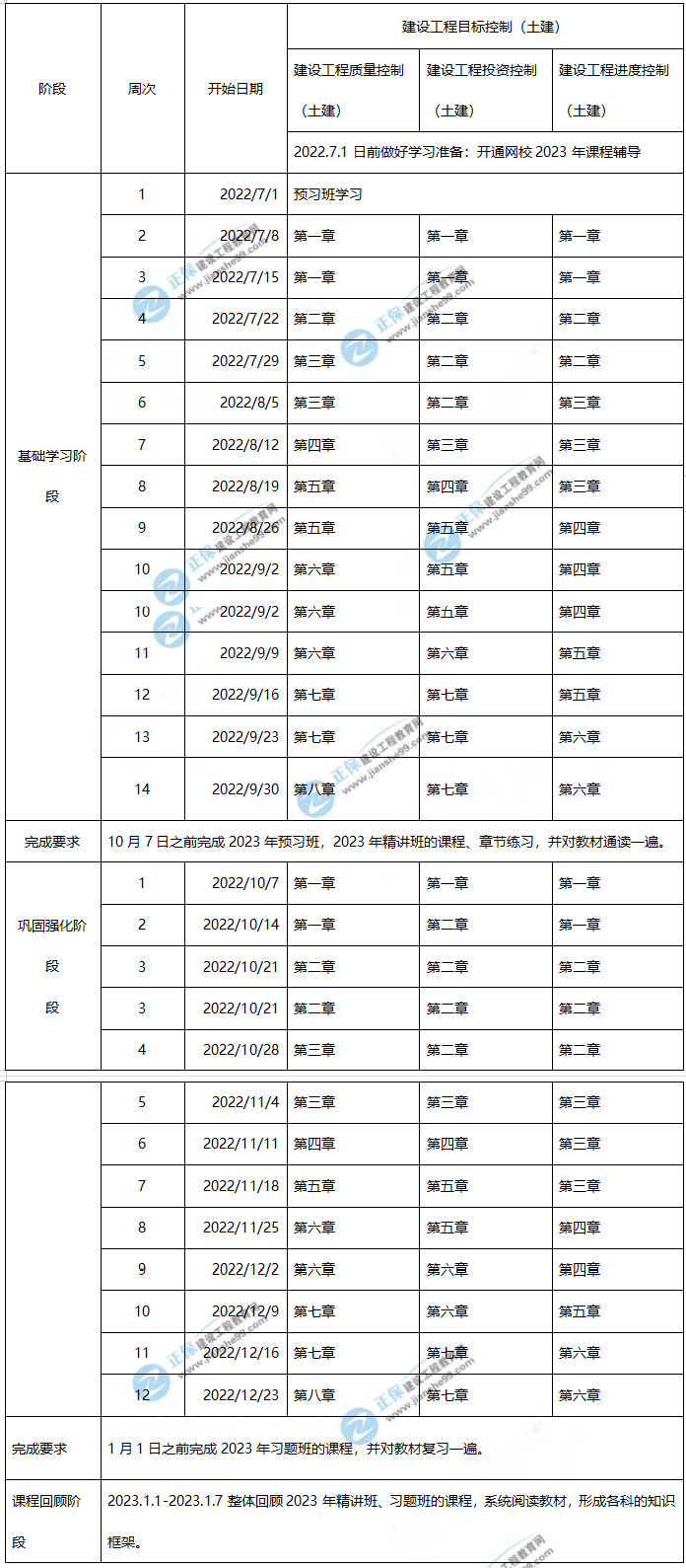 2023年監(jiān)理工程師土建控制學習計劃時間表