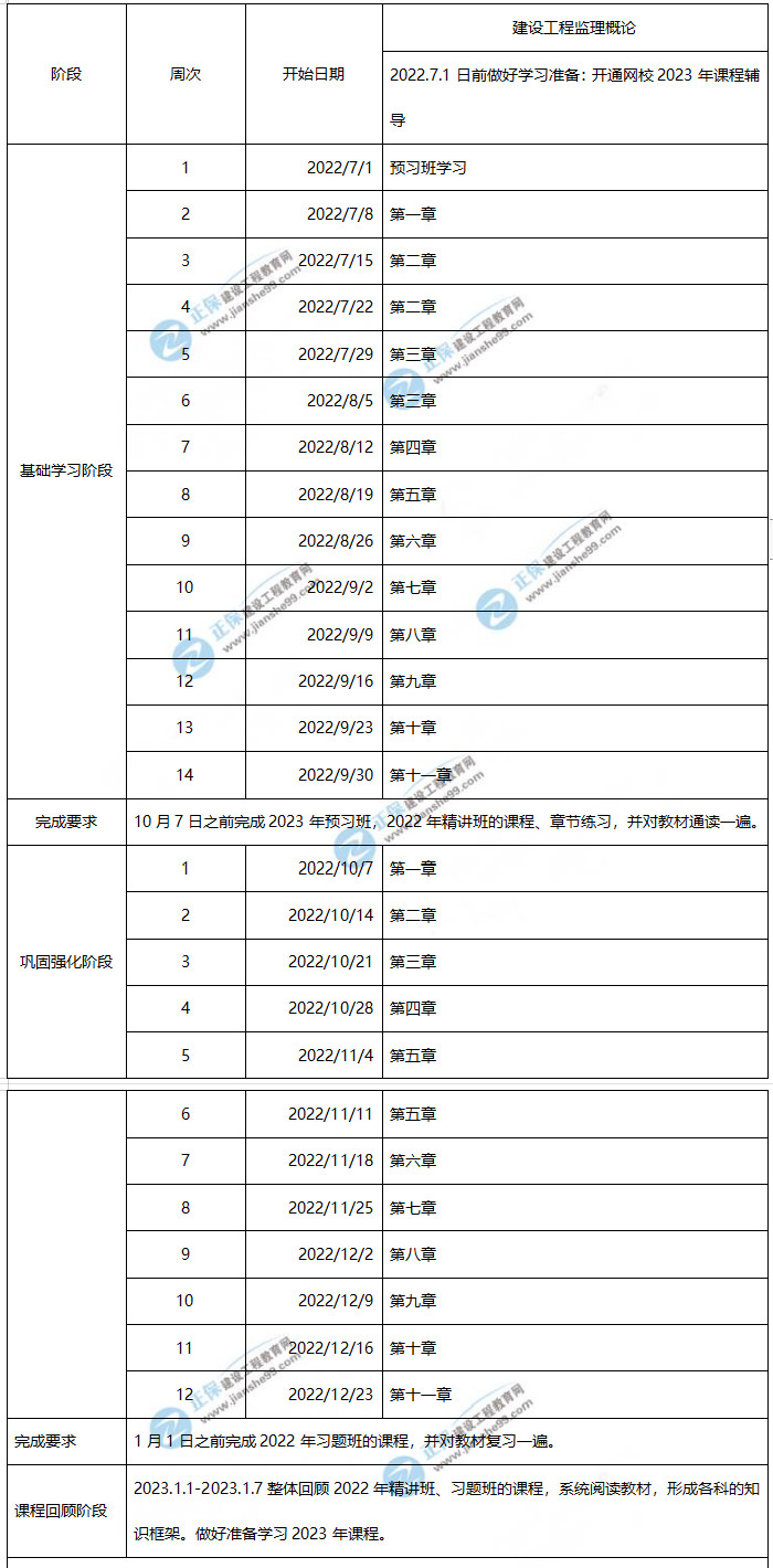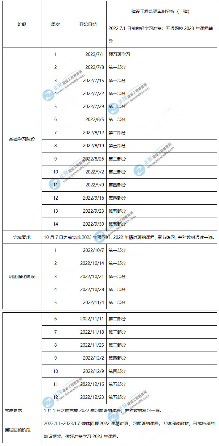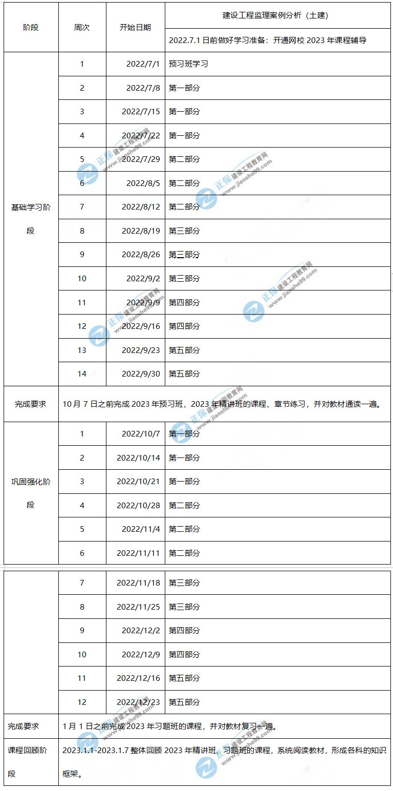 2023年監(jiān)理工程師案例分析(土建)學(xué)習(xí)計(jì)劃時(shí)間表