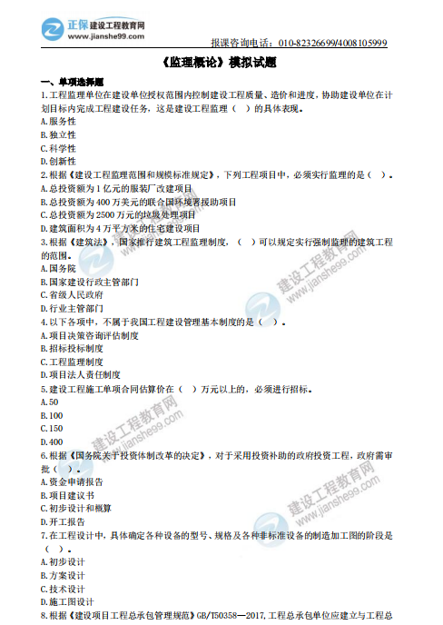 【追加】2022年監(jiān)理工程師考試考前一套卷立即查看
