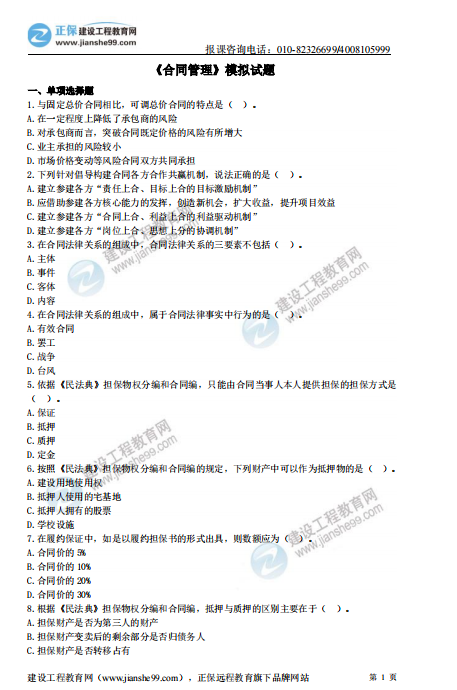 為了幫助考生復(fù)習(xí),建設(shè)工程教育網(wǎng)特為大家準備了考前一套卷進行測試,快來看看自己學(xué)習(xí)的效果吧~