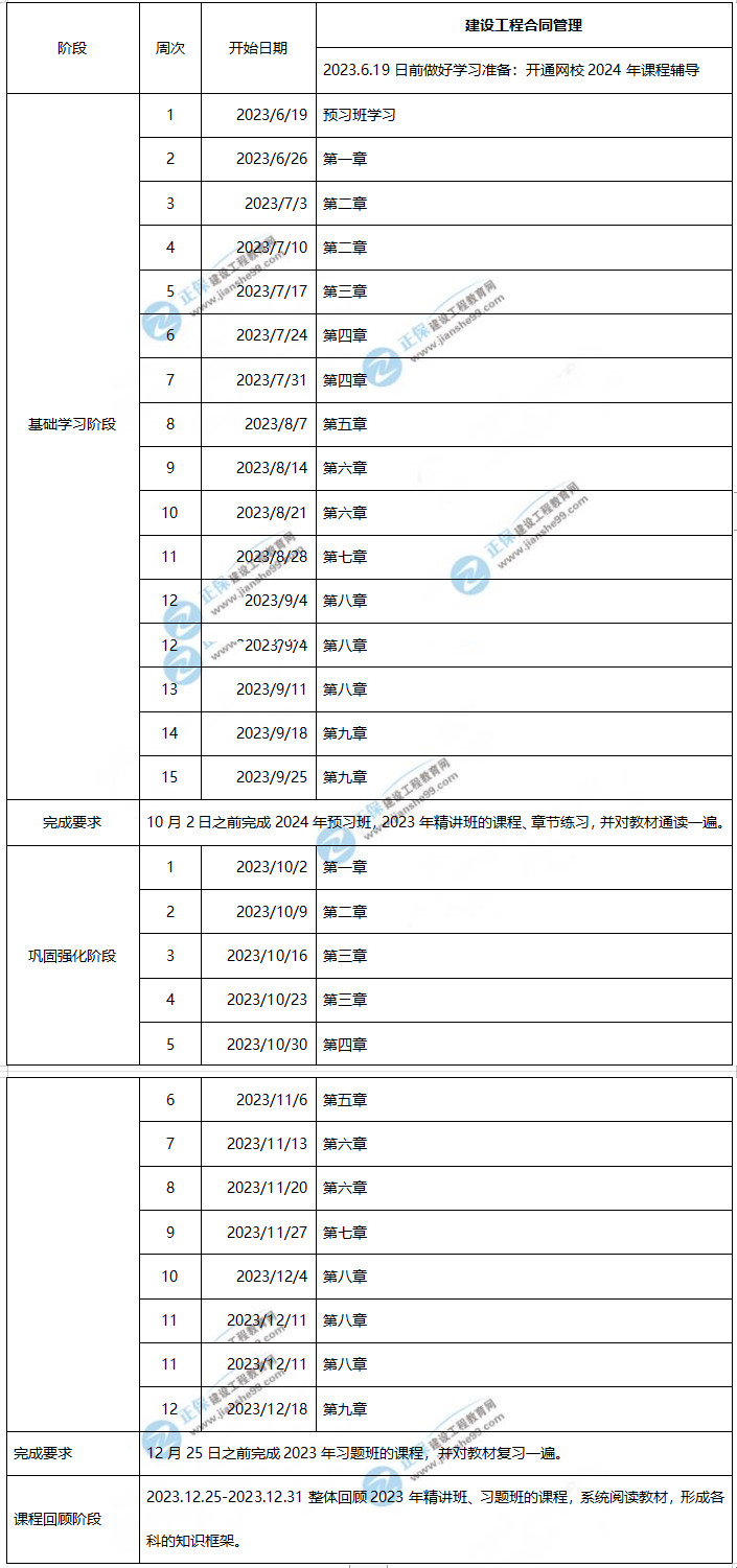 2024年監(jiān)理工程師合同管理學習計劃時間表