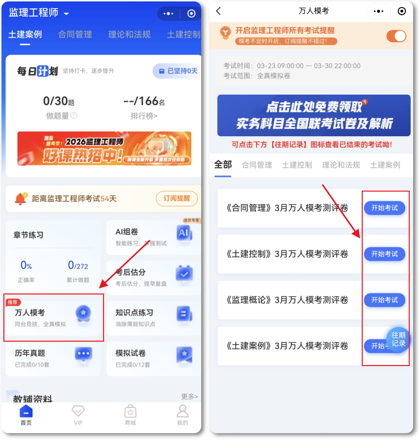 2026年全國監(jiān)理工程師3月萬人模考來襲!當前階段大家備考狀態(tài)如何?想要檢驗最近的學習效果?2026年監(jiān)理3月萬人??疾灰e過!本次模考試卷采用全真模擬卷,根據(jù)新教材篩選整理,幫助大家提前考場演練!