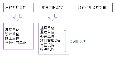 我國實行:“政府監(jiān)督、社會監(jiān)理與檢測、企業(yè)自控”的質(zhì)量管理與保證體系。