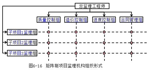 矩陣制組織形式的優(yōu)點是加強(qiáng)了各職能部門的橫向聯(lián)系,具有較大的機(jī)動性和適應(yīng)性,將上下左右集權(quán)與分權(quán)實行最優(yōu)結(jié)合,有利于解決復(fù)雜問題,有利于監(jiān)理人員業(yè)務(wù)能力的培養(yǎng)。缺點是縱橫向協(xié)調(diào)工作量大,處理不當(dāng)會造成扯皮現(xiàn)象,產(chǎn)生矛盾。