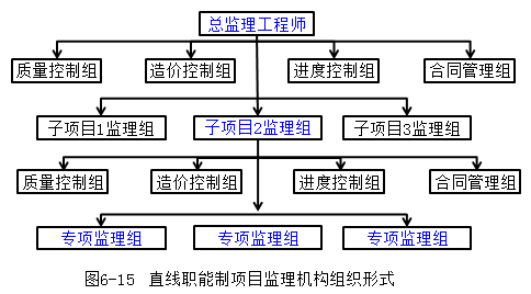 職能制組織形式是在項目監(jiān)理機(jī)構(gòu)內(nèi)設(shè)立一些職能部門,將相應(yīng)的監(jiān)理職責(zé)和權(quán)力交給職能部門,各職能部門在其職能范圍內(nèi)有權(quán)直接發(fā)布指令指揮下級。