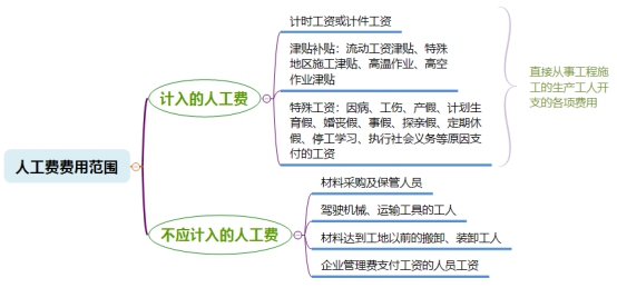 具體人工費(fèi)的計(jì)取范圍和不應(yīng)計(jì)入的費(fèi)用,可參考以下圖示: