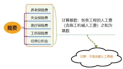 規(guī)費(fèi)指按法律、法規(guī)、規(guī)章、規(guī)程規(guī)定施工企業(yè)必須繳納的費(fèi)用。個(gè)人繳納部分含在個(gè)人工資中。企業(yè)管理費(fèi)中基本費(fèi)用包括的管理人員所繳納的“四險(xiǎn)一金”不含在規(guī)費(fèi)中,規(guī)費(fèi)只是給生產(chǎn)工人繳納的“四險(xiǎn)一金”。
