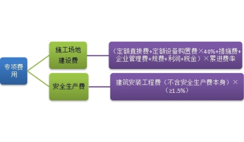 專項(xiàng)費(fèi)用由兩部分組成,包括施工場(chǎng)地建設(shè)費(fèi)和安全生產(chǎn)費(fèi)。