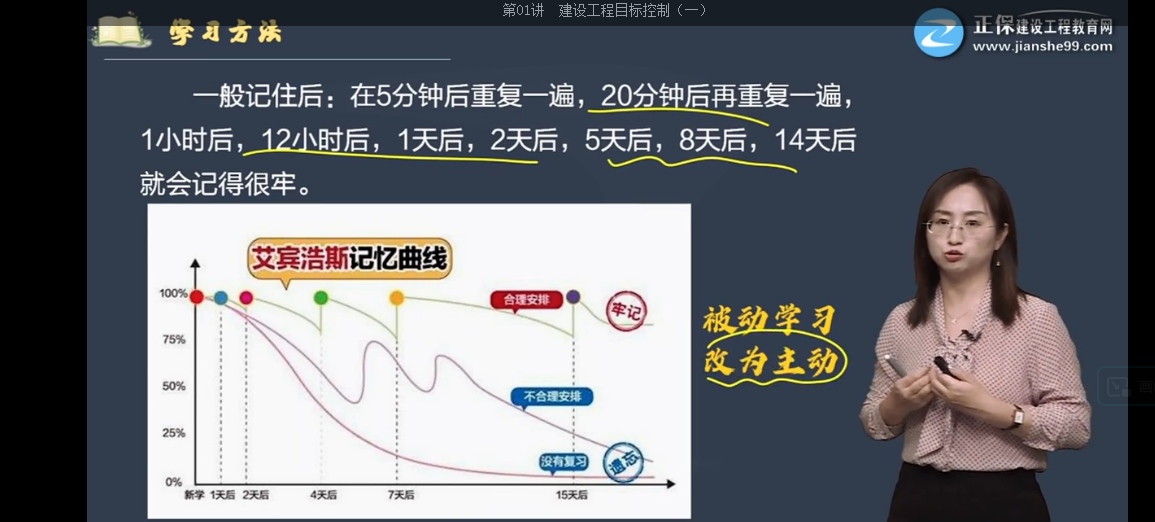 我們在學習的時候可以利用艾賓浩斯記憶曲線,人類的記憶一般是先快后慢,所以一定要及時的去復(fù)習,溫故而知新,這樣才會有好的學習效果,如果不復(fù)習就會像丟了西瓜撿芝麻一樣。所以,給自己多留出一些備考時間,高效備考就趁現(xiàn)在!監(jiān)理課程在雙12期間低至7.8折,趕緊來搶購~去監(jiān)理主會場>>