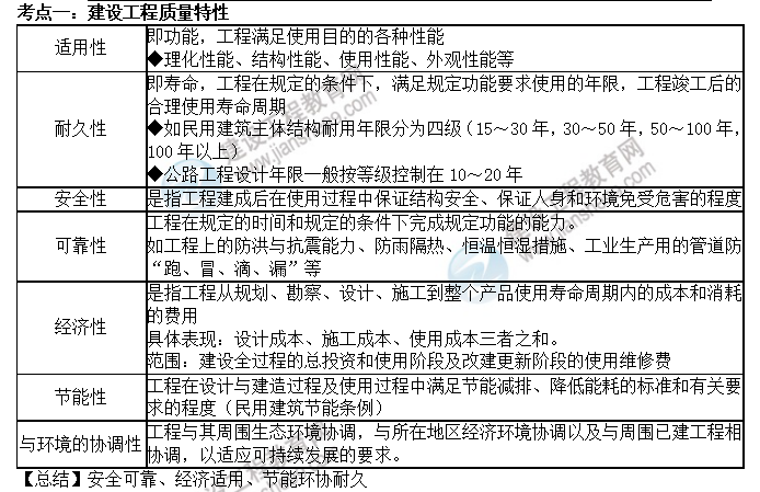 監(jiān)理工程師目標控制(土建)高頻考點:建設工程質量特性
