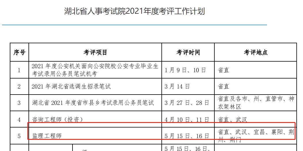 湖北2021年監(jiān)理工程師考評(píng)時(shí)間及考評(píng)地點(diǎn)